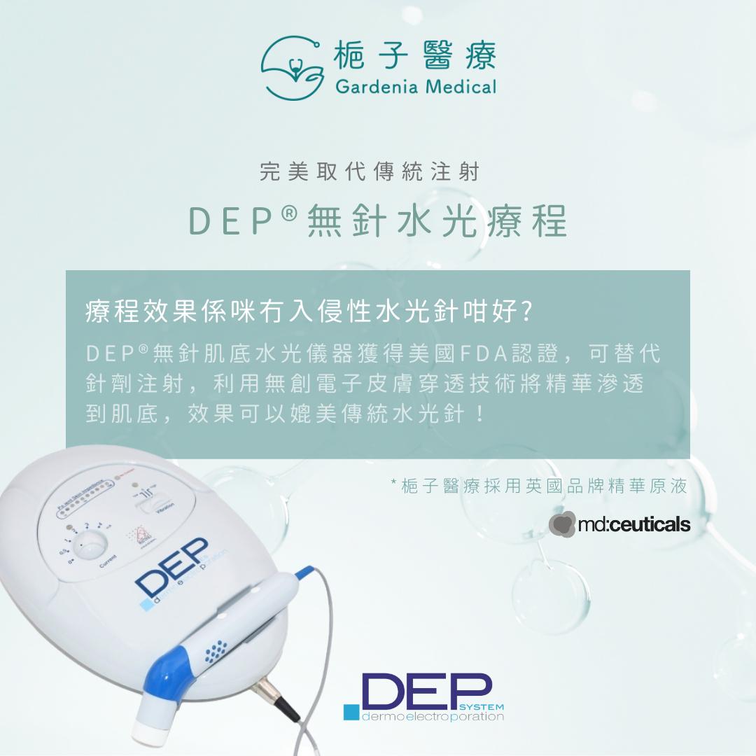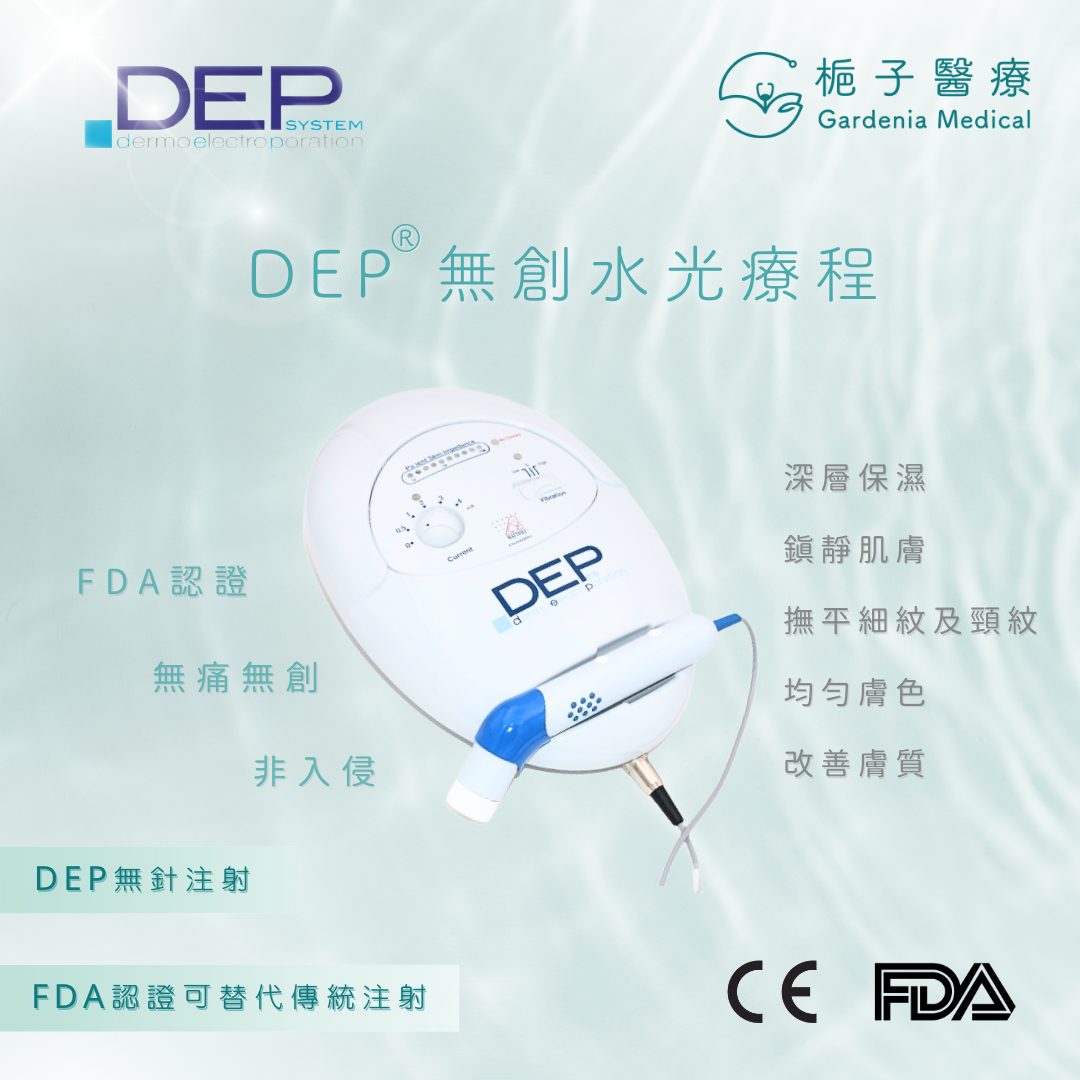 梔子醫療引入全新DEP®️無針水光療程見到人地做完DEP無針水光效果好好😍,自己又心思思想試?擔心效果冇傳統水光針咁好?DEP®️無針肌底水光儀器獲得美國FDA認證,可替代針劑注射,利用無創電子皮膚穿透技術將精華滲透到肌底,效果可以媲美傳統水光針!
